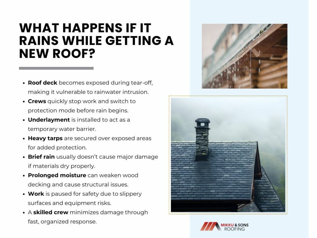 A rain event during a roof replacement tests a contractor’s systems far more than any stretch of dry weather. A crew that performs a disciplined shutdown, properly secures the structure, and resumes work only when conditions are safe demonstrates the professionalism that prevents long-term leaks.